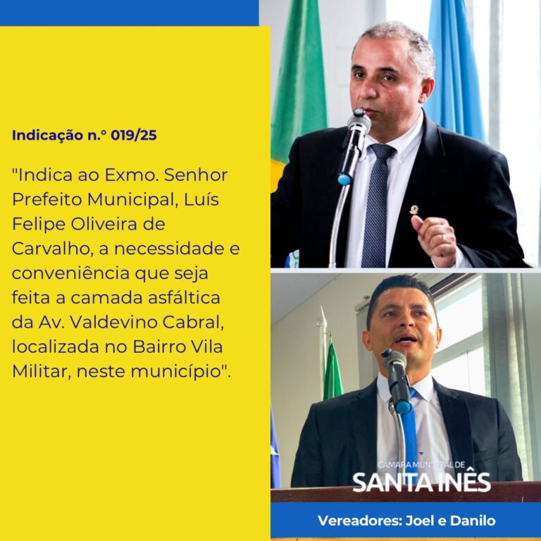 Indicação do Presidente da Câmara Municipal Joe da sinuca, e do Vereador Danilo